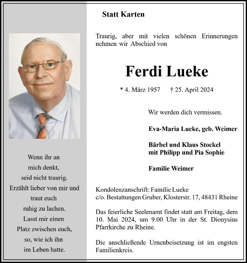 Sehen Sie hier die Termine der Abschieds- und Trauerfeierlichkeiten.