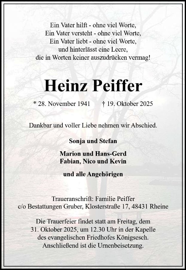 wir wünschen Ihnen von Herzen viel Kraft, dass Sie Menschen um sich haben, die Ihnen in dieser schweren Zeit beistehen und Halt geben. Zusätzlich können Sie auf dieser Gedenkseite Erinnerungen teilen und so das Andenken gemeinsam wachhalten.