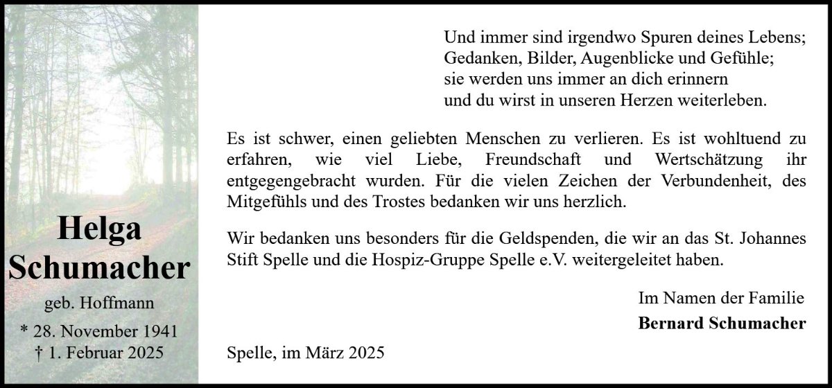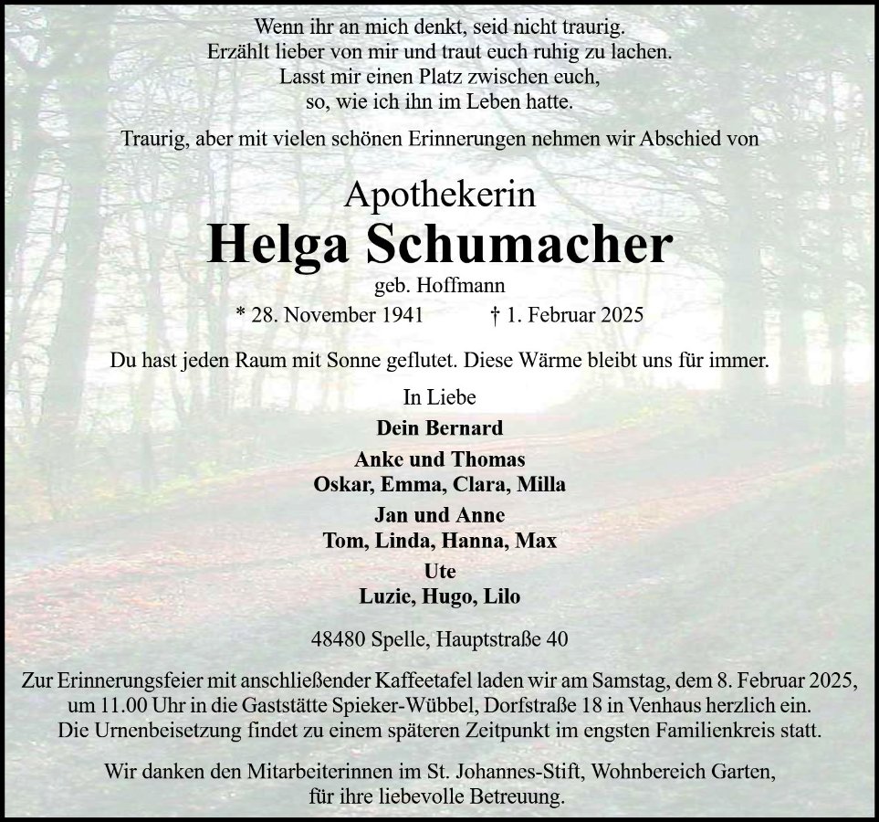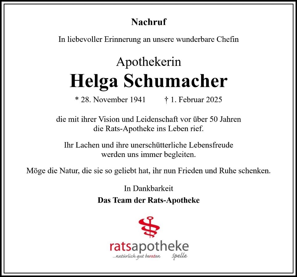 Viele Jahre wurden wir sehr kompetent von Helga Schuhmacher betreut.