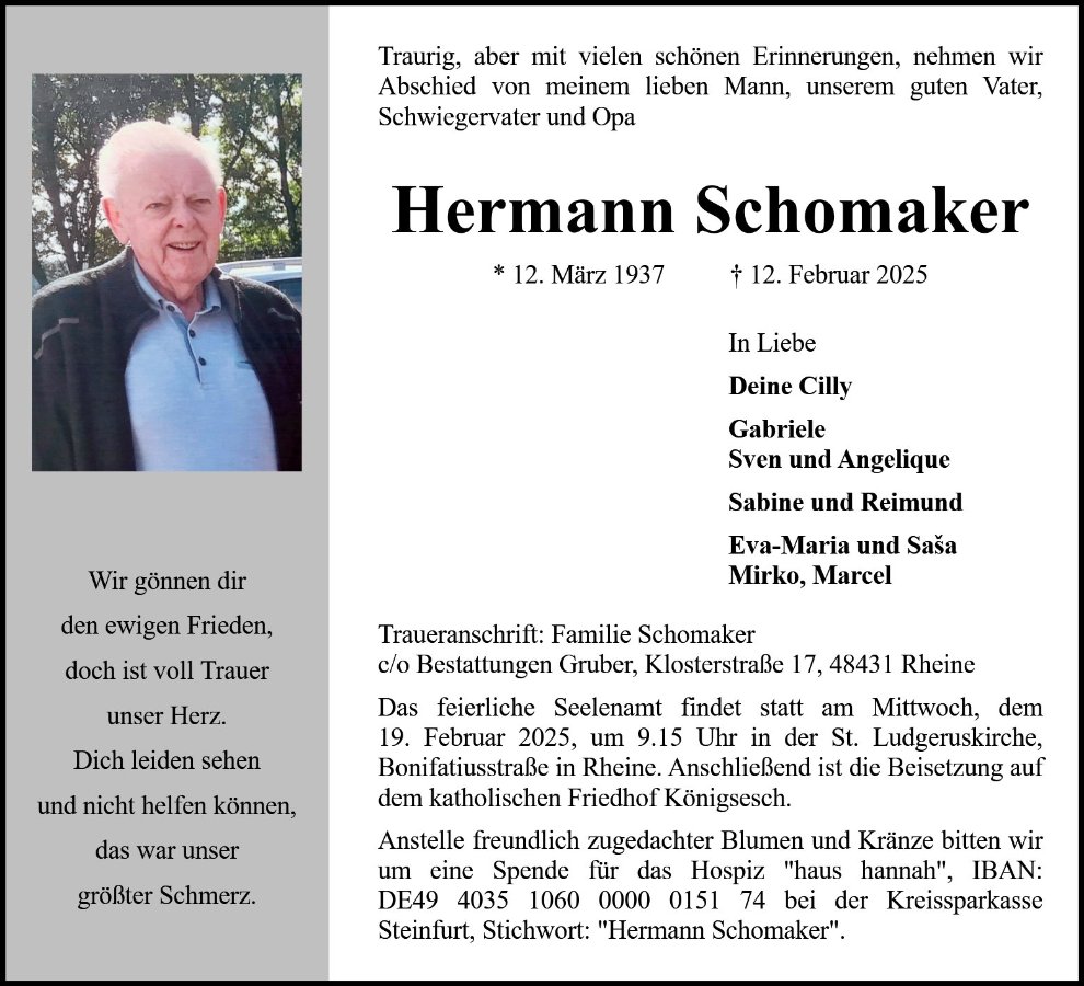 Hermann Schomakergestorben am 12. Februar 2025