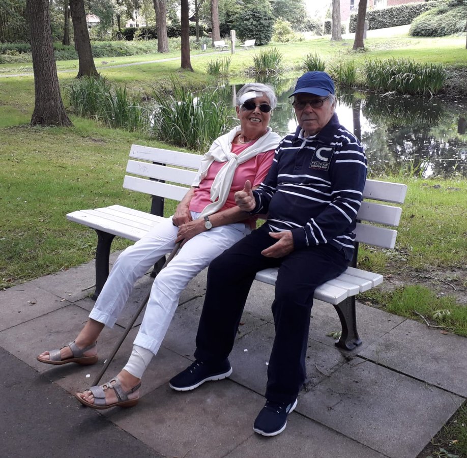 Ihr sitzt wieder gemeinsam auf einer Bank.